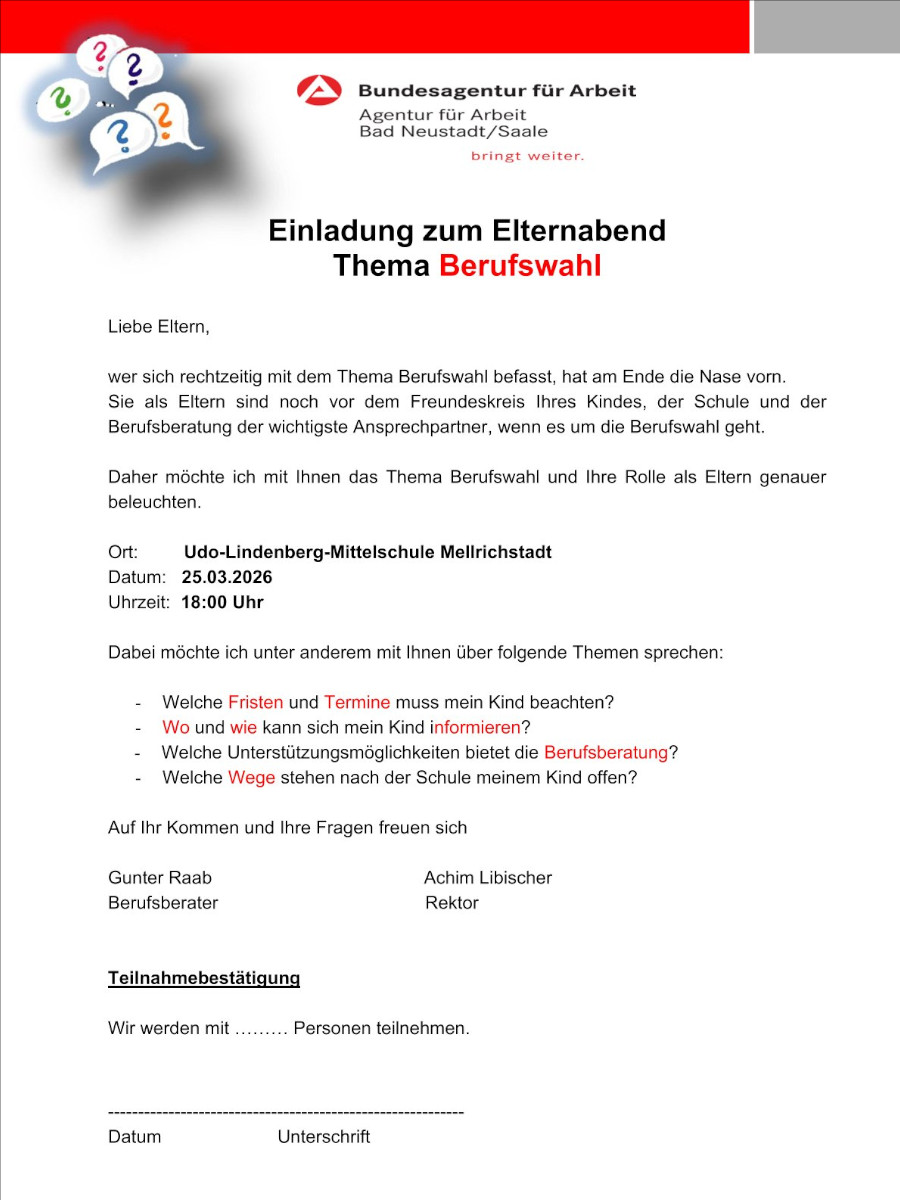 Einladung zum Elternabend Thema Berufswahl