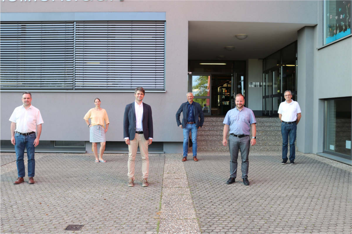 Aller guten Dinge sind drei im Vorstandsgremium des Schulverbands Mittelschule Mellrichstadt: (von links) Michael Schnupp (3. Vorsitzender), Konrektorin Melanie Dotzer, Michael Kraus (Vorsitzender), Rektor Achim Libischer, Steffen Malzer (2. Vorsitzender) und der ausscheidende Eberhard Streit.